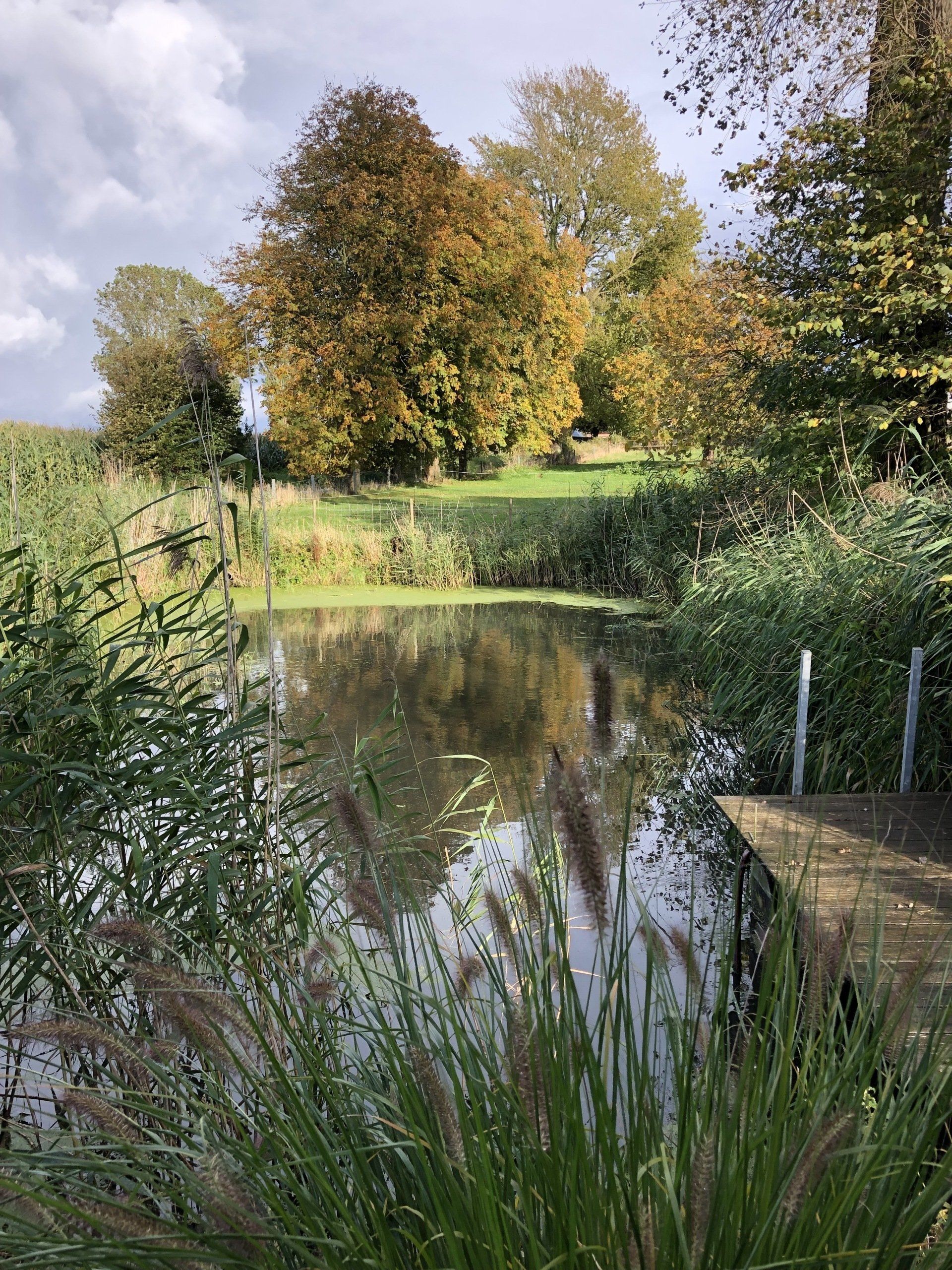 - ein schöner, 1000 qm großer Garten mit Gartenteich und Sonnendeck