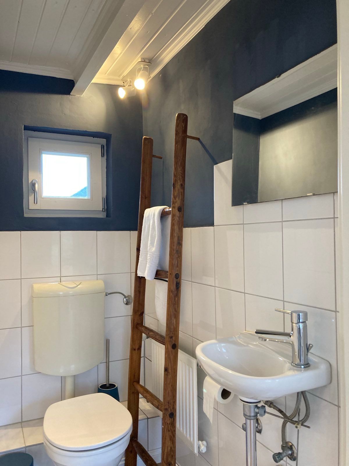 Den Rotwein dazu müssen sie sich selbst mitbringen, das Rotweinglas finden sie im Sideboard. Ein Sessel mit Leselampe, sowie maritime Keramikleuchten machen das Ambiente perfekt.